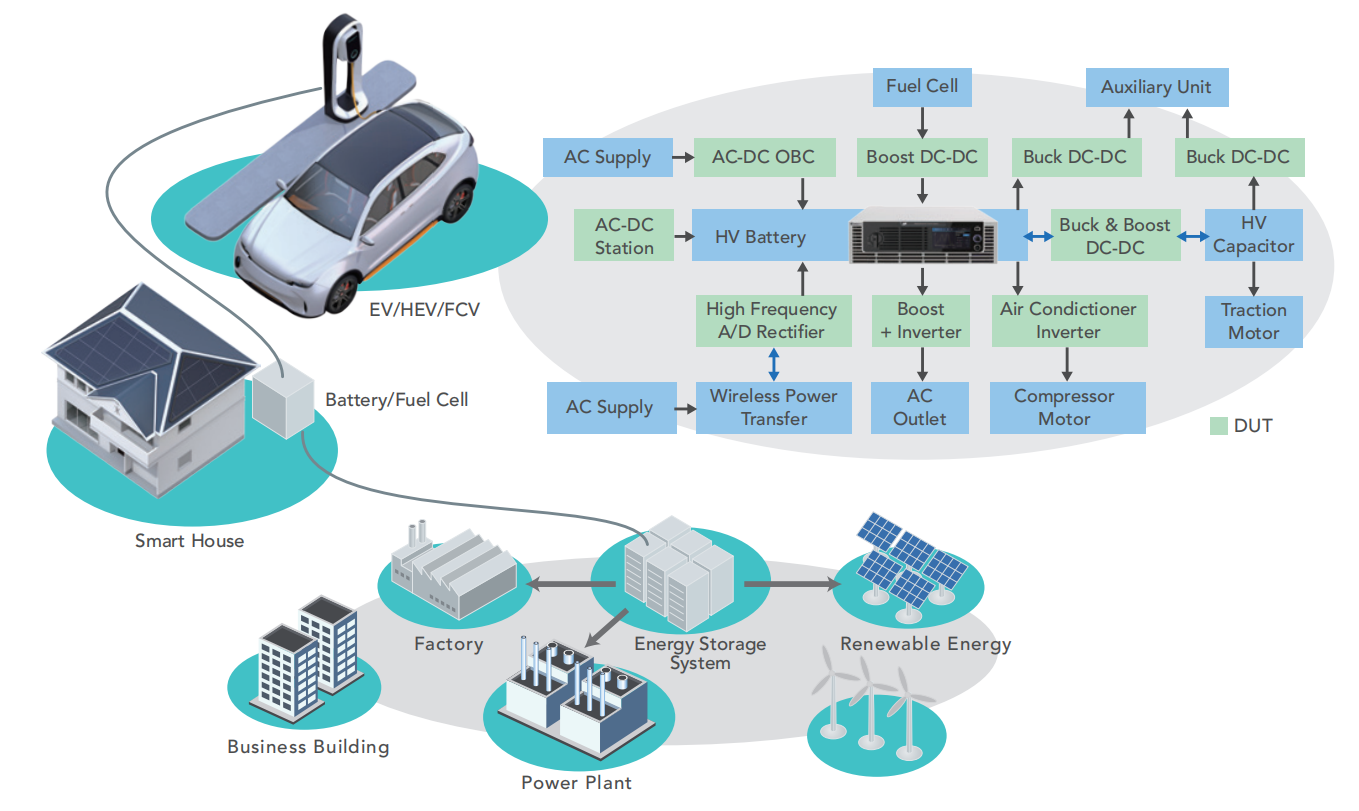 电动车及储能微网之电源转换测试应用