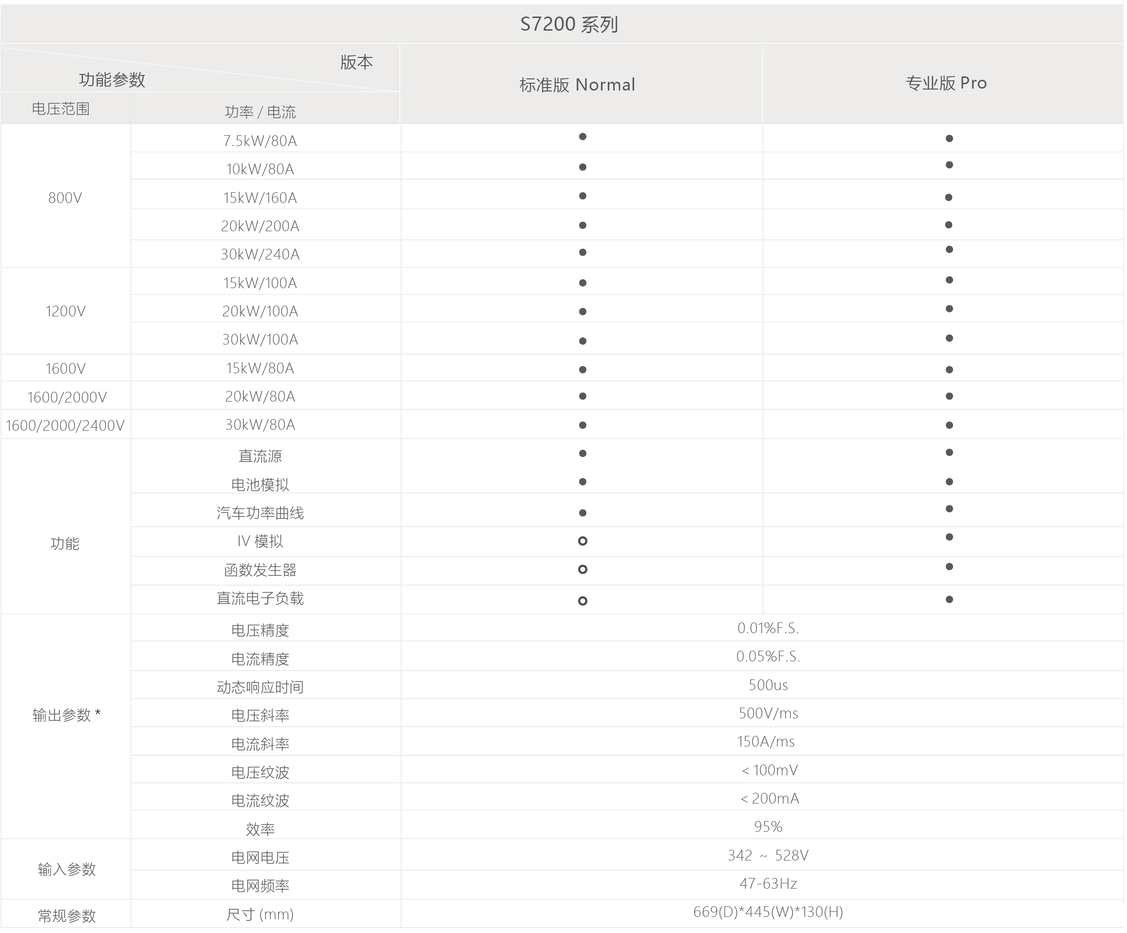 产品规格表