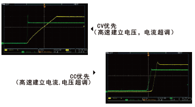 当电源输出接入感性或容性负载时会造成输出电流或电压一定程度的过冲,轻则触发被测设备保护,严重的将直接导致被测设备损坏。FTG系列具备CV、CC输出优先功能从而有效抑制输出过冲及带来的影响。