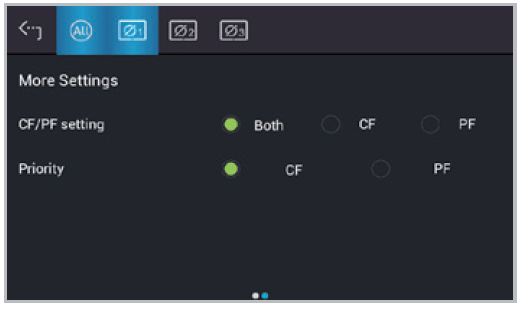 63800R系列能源回收式交流电子负载配备触控式操作萤幕,提供直观的UI介面让用户快速进行多项设定和操作。交流负载的进阶功能如拉载/卸载角度、拉载电流Slew Rate等设定,皆隐藏于右上角More Setting功能,使主设定画面简洁干净。而透过全屏模式,可将所有量测值扩展至全屏,适用于完成输入设定后的观察环节,提供用户更清楚的量测参数画面。