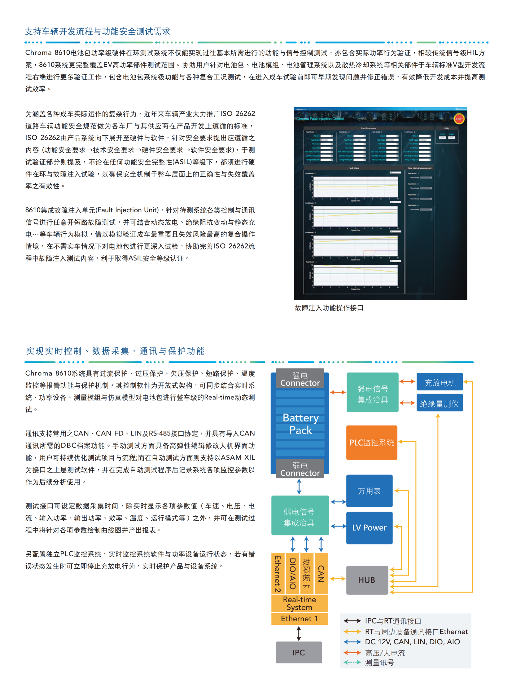 Chroma 8610电池包功率级硬件在环测试系统专门针对电池模组与电池包研发设计,结合实时硬件系统与开放式软件架构,提供用户弹性且功能强大的动态测试系统。
