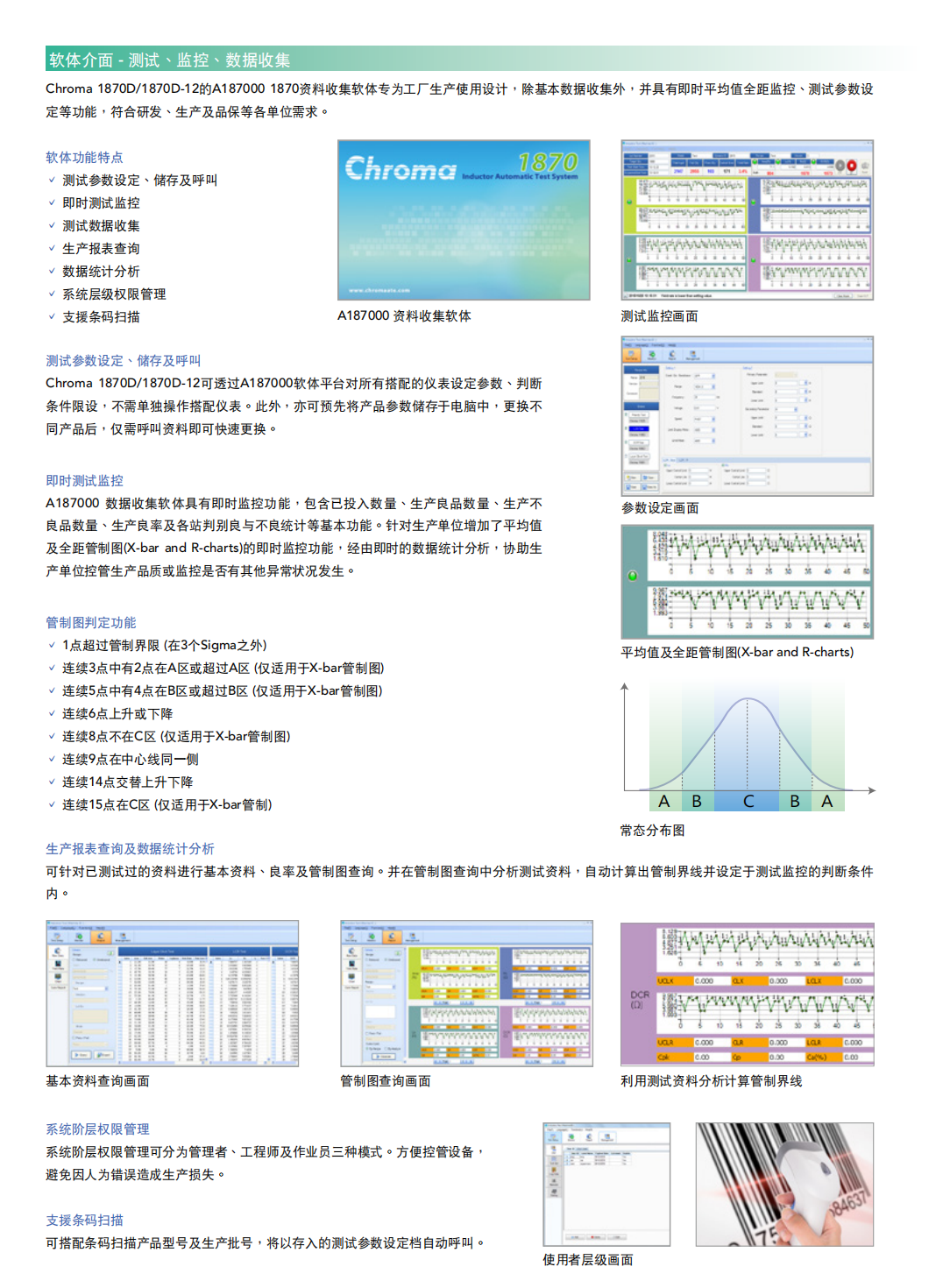 Chroma 1870D系列(1870D/1870D-12)是一款为晶片型电感所设计的自动化测试生产设备,包含晶片电感所需的各项测试功能,并具备制程终端的卷带包装自动化机械,达到生产线的制造自动化。